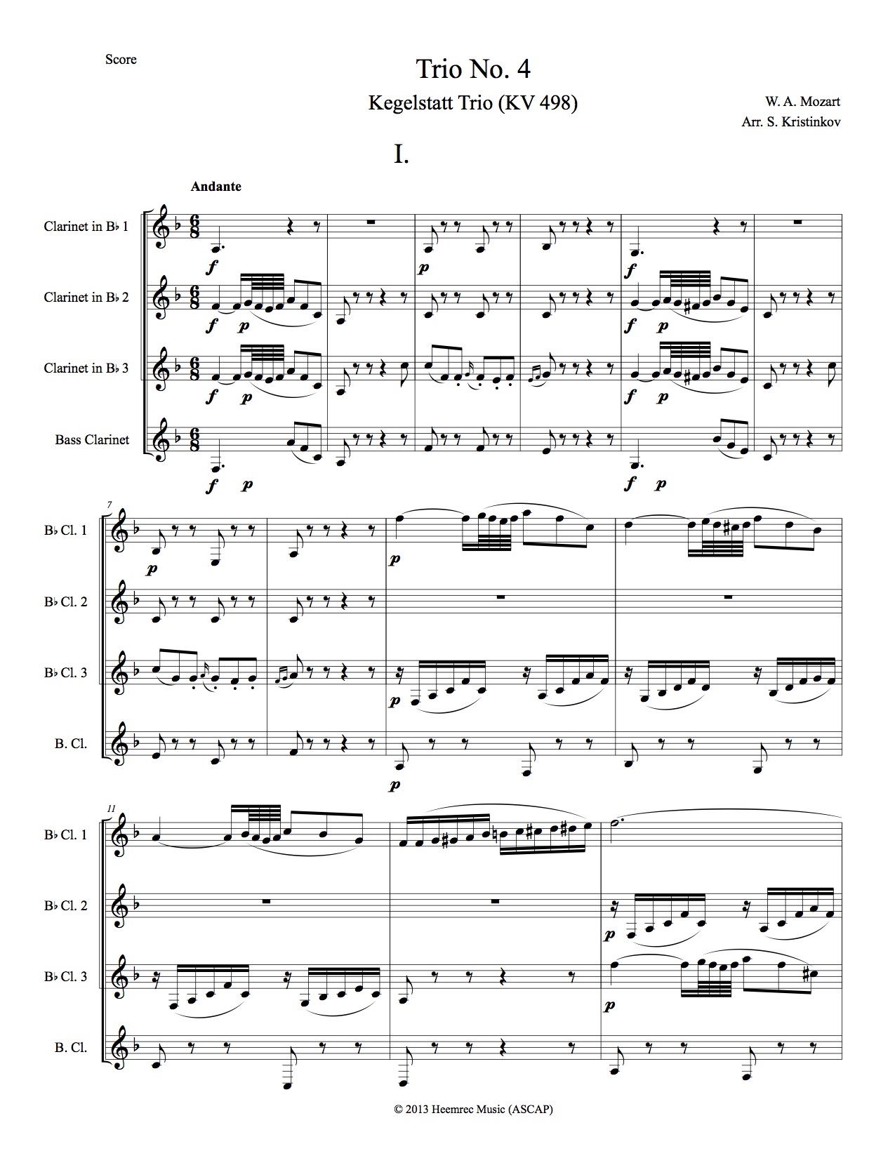 Mozart: Trio No.4, Kegelstatt Trio, K.498